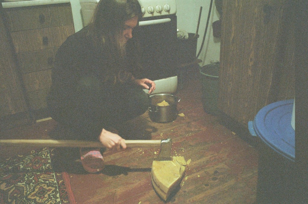 Olia and I went for a walk to the forest just to see what the sun and wind felt like from from different angles. Upon return, the neighbour, bent ninety-degrees at the waist hoeing potatoes, couldn’t really understand that we came back without foraged mushrooms. A friend has said that she finds it sad that her parents don’t know how to have fun, that every spare moment is spent processing apples, feeding chickens, digging potatoes, canning tomatoes. They would never go to a movie or concert. This weekend, her and I will go to a bar on Friday, a concert on Saturday, and another concert on Sunday. We are of the generation that must always constantly forever be entertained. There’s not much entertainment in the village since the discobar closed.