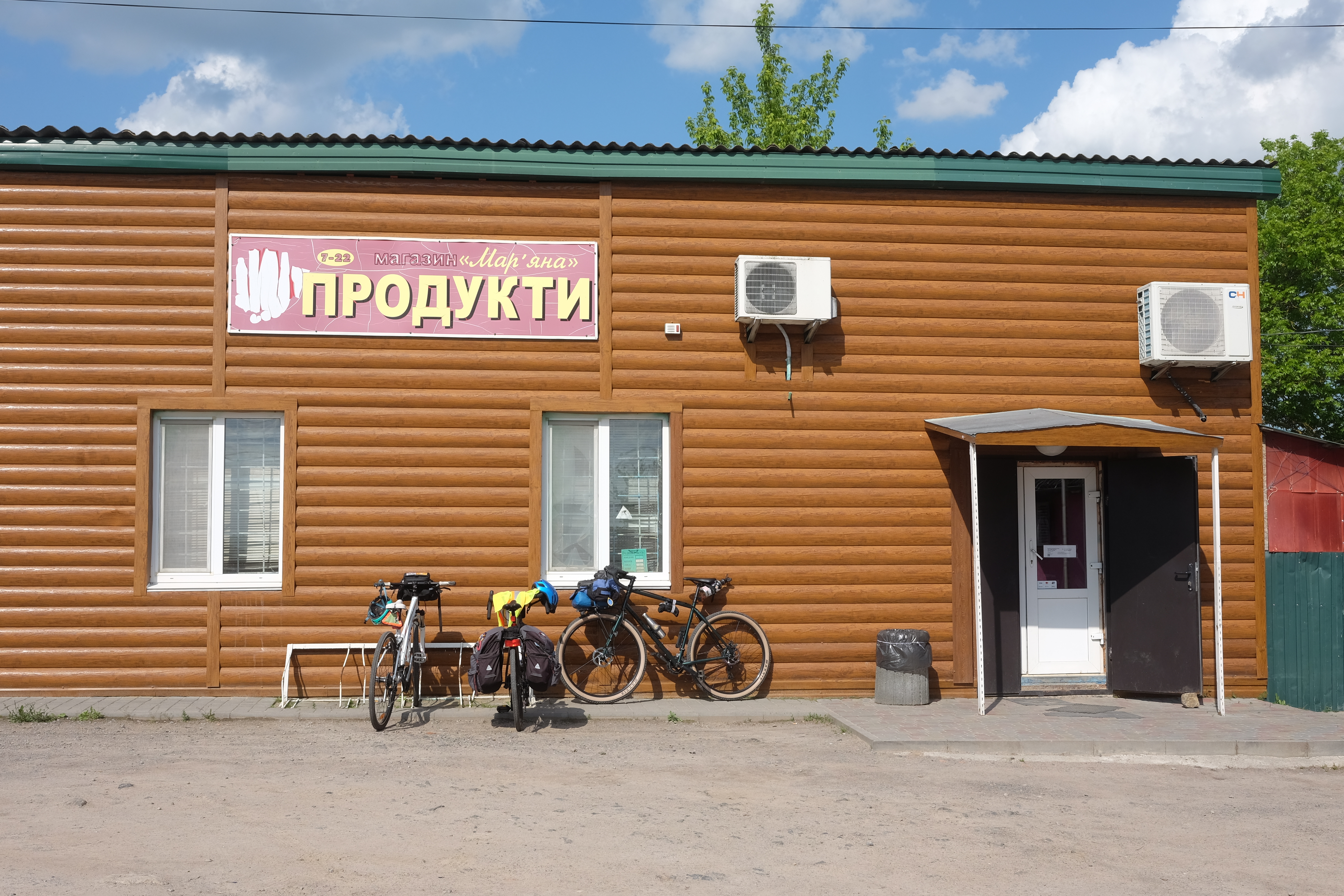 We roll into Brailiv after napping in the nearby forest. Air raid sirens hang above the town like static electricity, and outside the school girls sing and choreograph movements to “Ukraine Sings”, while stray dogs chuckle and drink from puddles. On this episode of Dissociative Village High School. Outside of the town’s lone shop we discuss where to go next. Two girls on recess coming out of the shop with ice cream muster up the courage to say Hello and Are you from English? before noticing their error and running off giggling, warm. It feels good to be important again.